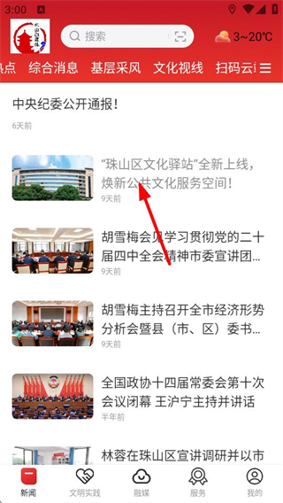 1、在古鎮(zhèn)珠山首頁,點擊要查看的新聞內(nèi)容,進(jìn)入新聞詳情頁面。