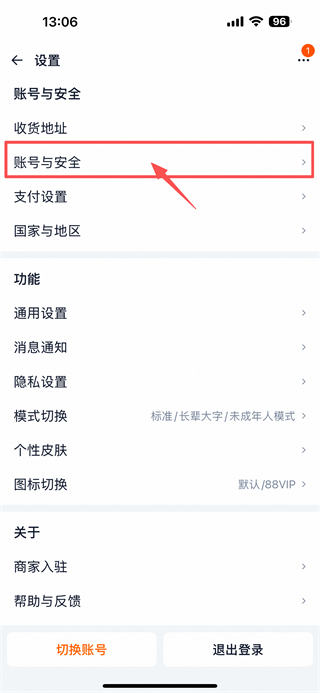 3、在設(shè)置界面,點(diǎn)擊賬號(hào)與安全選項(xiàng),進(jìn)入賬號(hào)與安全頁(yè)面。