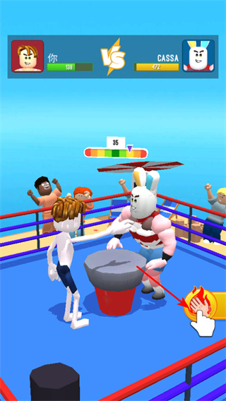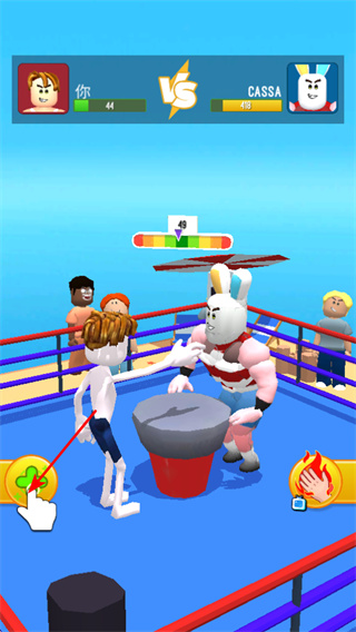 1、游戲中點擊火焰攻擊按鈕,可發(fā)動強力攻擊,這是拳擊對戰(zhàn)中制勝的關(guān)鍵操作,使用時需把握攻擊時機。