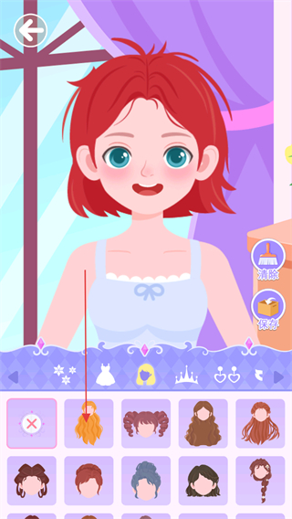 2、在下方列表欄中,找到個(gè)人心儀的發(fā)型妝造以及一些精美飾品,為西西公主進(jìn)行打扮。