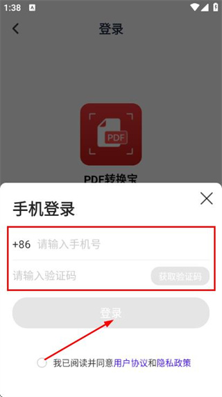 4、輸入手機(jī)號(hào)和驗(yàn)證碼后點(diǎn)擊登錄,完成登錄操作。