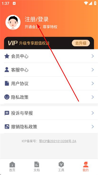 2、在個(gè)人頁(yè)面點(diǎn)擊注冊(cè)登錄,進(jìn)入登錄頁(yè)面。