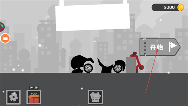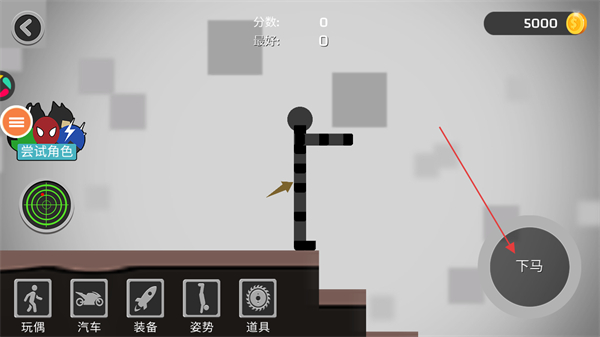 2、進入關卡后,利用左下角的道具進行布置對火柴人進行傷害,點擊右下角的下馬按鈕開始游戲。