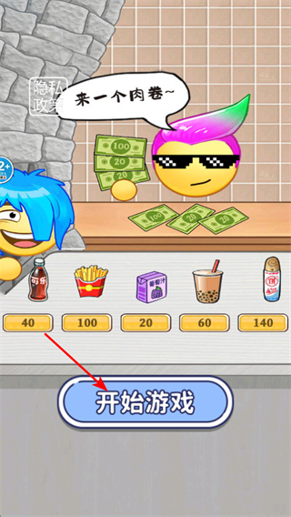 1、游戲中點(diǎn)擊開始游戲按鈕,可進(jìn)入餐飲服務(wù)關(guān)卡,這是開啟游戲的關(guān)鍵操作,將開始為顧客提供餐飲服務(wù)。