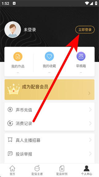 2、在個人中心頁面,點擊立即登錄,進入登錄流程。