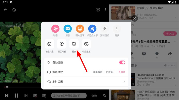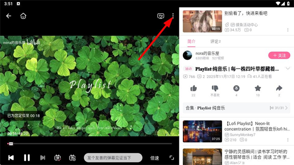 2、在內(nèi)容播放頁面,點擊右上角更多按鈕,打開操作菜單。