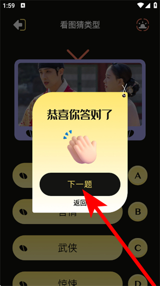 4、答對(duì)后,在彈窗中,點(diǎn)擊下一題,可繼續(xù)參與答題。
