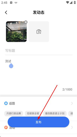 3、內(nèi)容填寫完成后,點擊發(fā)布按鈕,完成動態(tài)發(fā)布操作。