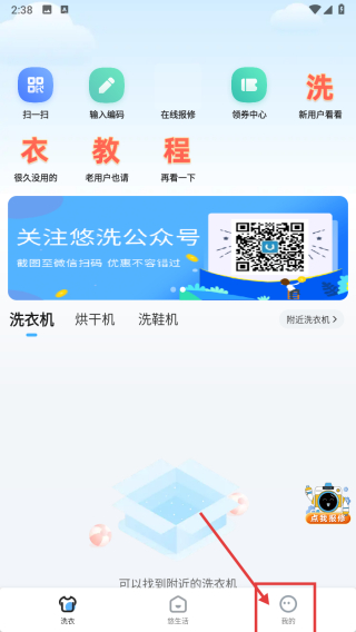 1、打開(kāi)洗衣服務(wù)類(lèi)APP,點(diǎn)擊底部我的選項(xiàng),進(jìn)入個(gè)人中心頁(yè)面。