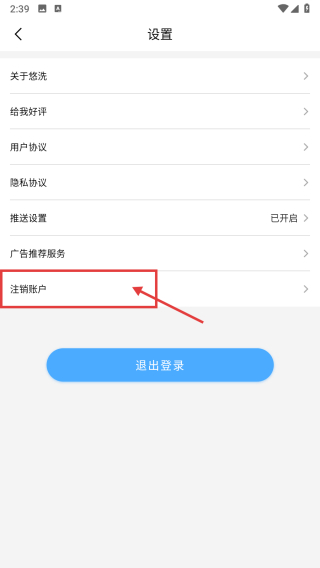 3、在設(shè)置界面,點(diǎn)擊注銷(xiāo)賬戶(hù)選項(xiàng),進(jìn)入注銷(xiāo)賬戶(hù)確認(rèn)頁(yè)面。