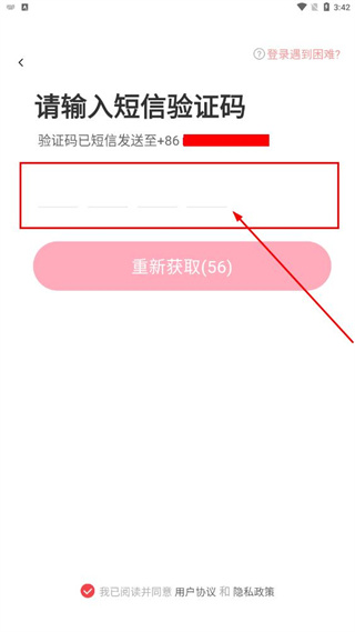 4、在短信驗(yàn)證碼輸入頁面,輸入收到的驗(yàn)證碼,完成登錄操作。