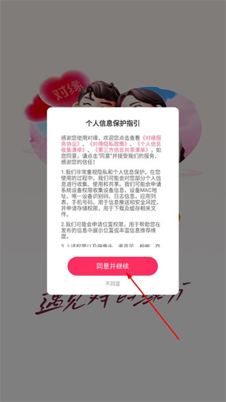 1、在個(gè)人信息保護(hù)指引彈窗中,點(diǎn)擊同意并繼續(xù),進(jìn)入登錄頁面。