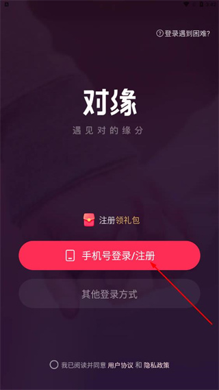 2、在登錄頁面,點(diǎn)擊手機(jī)號登錄/注冊,進(jìn)入手機(jī)號登錄注冊頁面。
