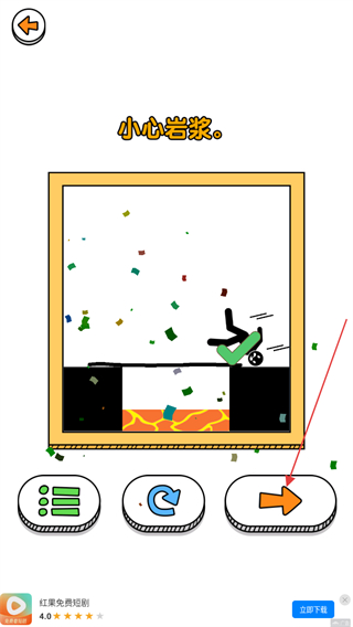 4、通過當(dāng)前關(guān)卡后,可以選擇是重新嘗試新的辦法游玩關(guān)卡還是點(diǎn)擊箭頭按鈕繼續(xù)下一關(guān)。