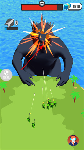 3、挑戰(zhàn)巨型怪物,如哥斯拉類敵人,需集中士兵火力攻擊其弱點(diǎn),高難度戰(zhàn)斗的關(guān)鍵步驟,攻擊時(shí)保持士兵部隊(duì)集中性。