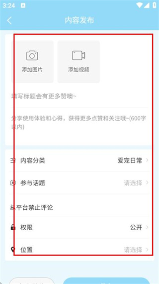2、在內(nèi)容發(fā)布頁(yè)面,選擇添加圖片,并填寫(xiě)標(biāo)題、內(nèi)容等信息。