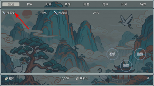 1、游戲中獲取并裝備疾風(fēng)劍等武器,可提升角色攻擊力,這是增強(qiáng)戰(zhàn)力的關(guān)鍵操作,需關(guān)注武器的屬性和獲取途徑。