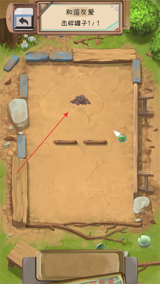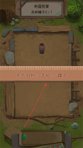 1、明確關卡目標為擊碎1個罐子,觀察罐子位置。