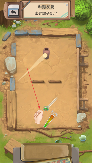 2、瞄準罐子,調(diào)整彈珠發(fā)射力度和角度,發(fā)射彈珠。