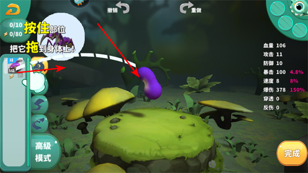 2、拖動部件到生物身體上,可組裝生物的身體結(jié)構(gòu),這是塑造生物能力的核心操作,拖動時需根據(jù)部件的屬性和生物的需求進行搭配。