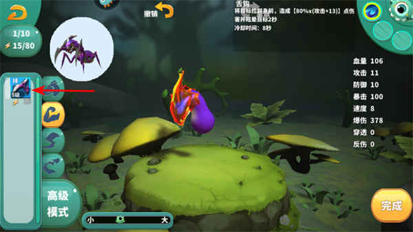 4、選擇不同的生物部件如螞蟻的部件,可更換生物的外觀和能力,這是豐富游戲體驗的關(guān)鍵策略,根據(jù)戰(zhàn)斗需求和部件特色進行挑選。