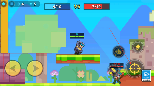 2、在對戰(zhàn)頁面通過左側(cè)的方向按鈕控制角色移動,點擊瞄準按鈕瞄準敵人。