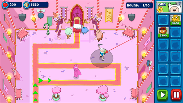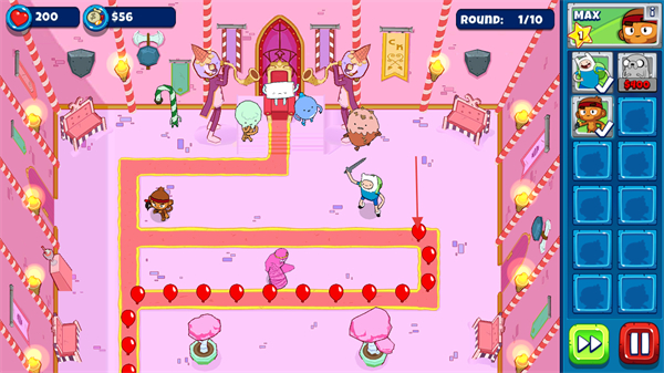 4、角色需要做的就是阻止氣球進(jìn)入城堡,點(diǎn)擊下方綠色按鈕可以開啟倍速。