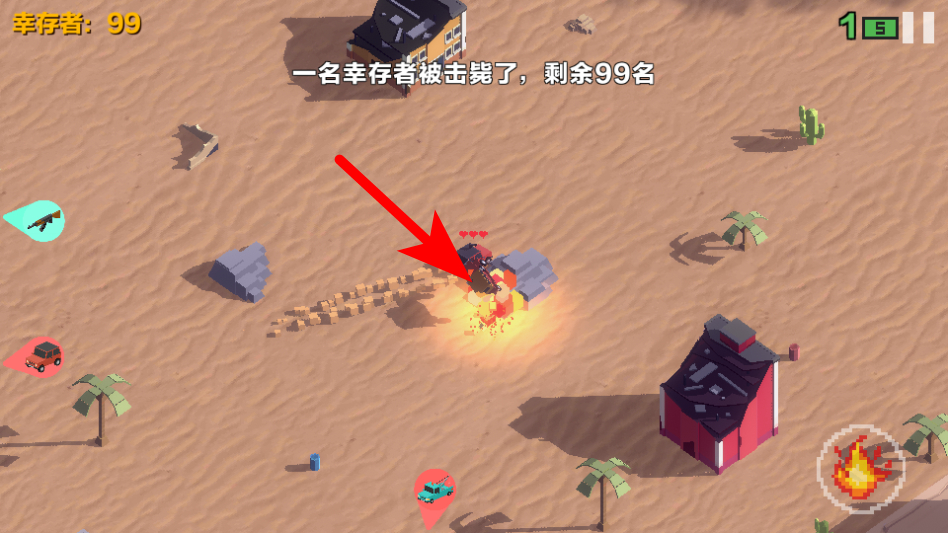 2、在游戲中駕駛汽車撞擊其他幸存者,減少幸存者數(shù)量,提升自己的生存優(yōu)勢。