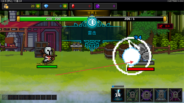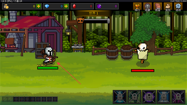 1、操控弓箭手在場(chǎng)景中攻擊稻草人等目標(biāo),積累經(jīng)驗(yàn)和資源。