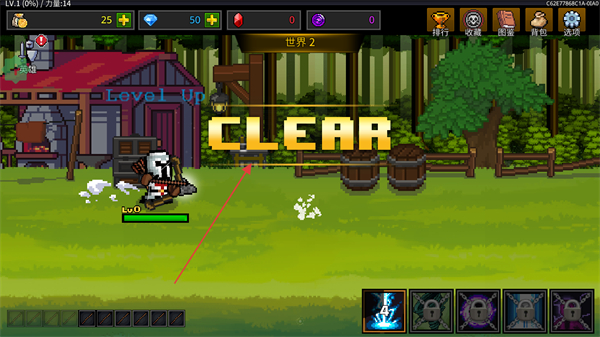 3、擊敗敵人后,場(chǎng)景出現(xiàn)CLEAR提示,完成關(guān)卡,解鎖新場(chǎng)景如世界2。