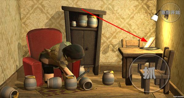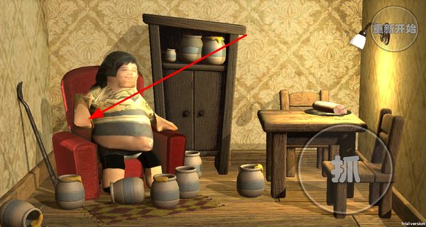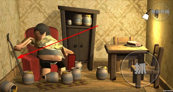 2、抓起鐵叉,移動手臂抓取鐵叉,獲取工具,助力后續(xù)的操作,推進吃到燜子的進程。