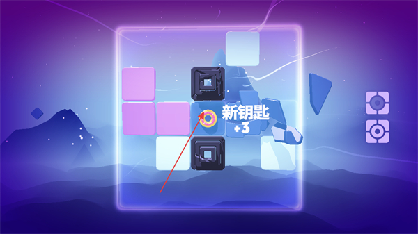 3、可以利用石頭不會被移動的特性,夾住帶有鑰匙碎片的方塊進行消除。