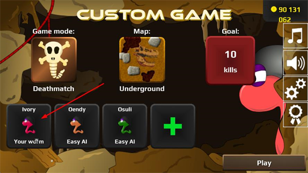 2、在自定義游戲頁(yè)面點(diǎn)擊Your worm,進(jìn)入蟲(chóng)蟲(chóng)設(shè)置頁(yè)面。