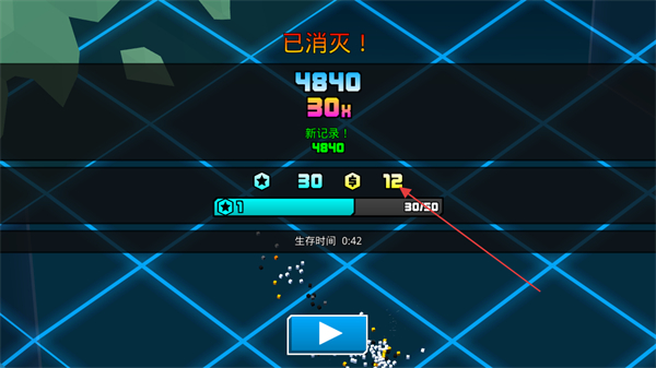 4、飛船被擊毀后進入結(jié)算頁面,根據(jù)擊敗飛船的數(shù)量得分獲取金錢和等級經(jīng)驗獎勵。