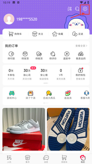2、在個人中心頁面,點擊右上角設(shè)置圖標(biāo),進(jìn)入設(shè)置界面。