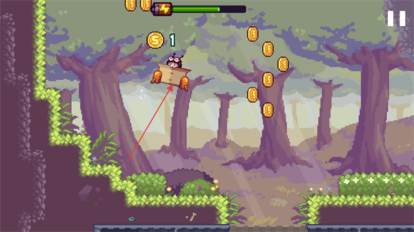 1、操控紙箱飛行器在森林場景中飛行,躲避障礙,收集金幣。
