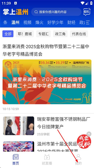 1、在掌上溫州首頁,點擊底部我的,進入個人頁面。