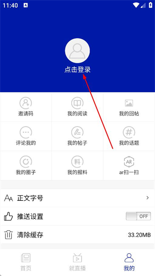 2、在我的頁面,點擊點擊登錄,進入登錄選擇頁面。