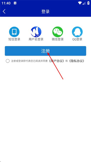 3、隨后可以在登錄頁面,點擊注冊,進入注冊頁面。