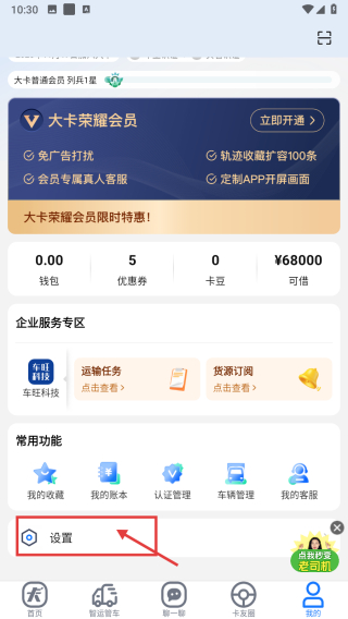 1、打開貨運(yùn)服務(wù)類APP,點(diǎn)擊底部我的選項(xiàng),進(jìn)入個(gè)人中心頁面。