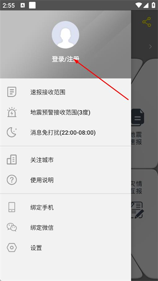 2、在APP主界面,點(diǎn)擊左上角人形圖標(biāo),展開個(gè)人菜單。