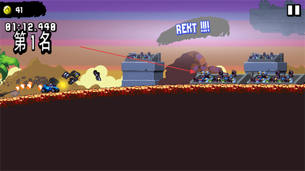 3、攻擊并淘汰其他賽車,觸發(fā)REKT!!!特效,確保自身排名第一。