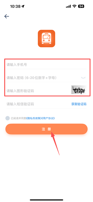 4、在注冊頁面,輸入手機(jī)號、密碼和圖形驗證碼,獲取并輸入短信驗證碼后,點擊注冊按鈕,完成賬號注冊操作。