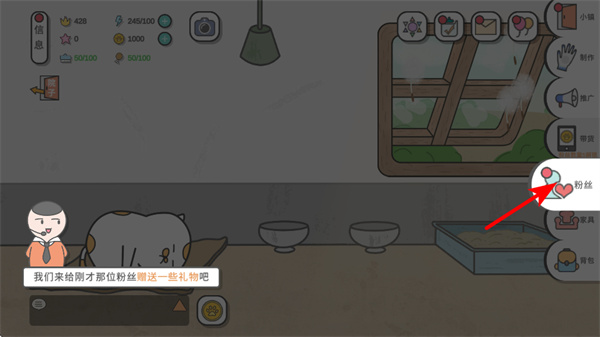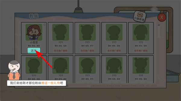 4、點擊送禮按鈕,可給粉絲贈送禮物提升粉絲好感度,這是增強粉絲粘性的關(guān)鍵策略,根據(jù)粉絲選擇合適禮物。