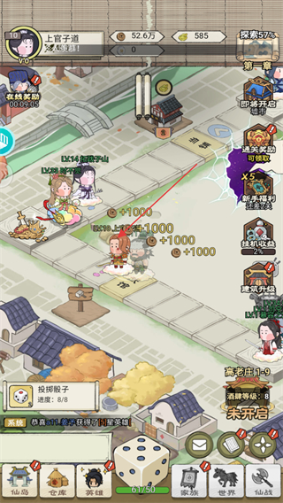 1、打開游戲進(jìn)入游戲系統(tǒng)主頁,點擊下方的骰子進(jìn)行角色在地圖上的步數(shù)移動。
