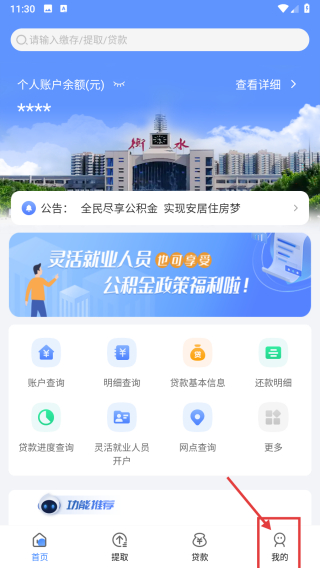 1、打開公積金類APP,點(diǎn)擊底部我的選項(xiàng),進(jìn)入個(gè)人中心頁面。