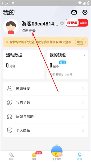 1、在運(yùn)動APP首頁,點(diǎn)擊底部我的,進(jìn)入個人頁面。