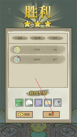 4、擊退所有怪物即為關(guān)卡勝利,可以獲得豐厚的獎勵,點(diǎn)擊下方確定按鈕獲取獎勵并返回主頁。
