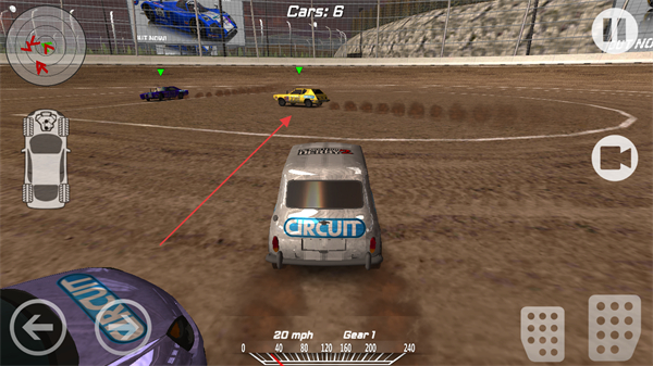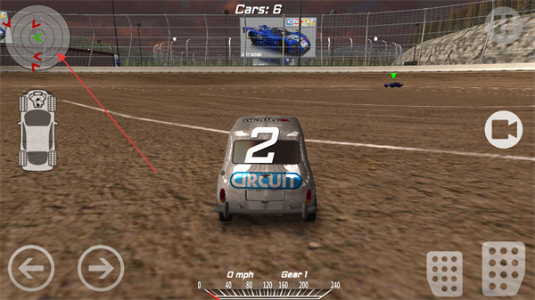 1、觀察左上角小地圖,了解賽道和其他車輛位置,駕駛賽車在泥地賽道行駛。