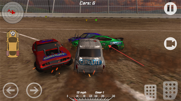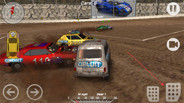 4、利用右側操作區(qū)域控制賽車加速,持續(xù)沖撞其他賽車,在混亂中提升排名。